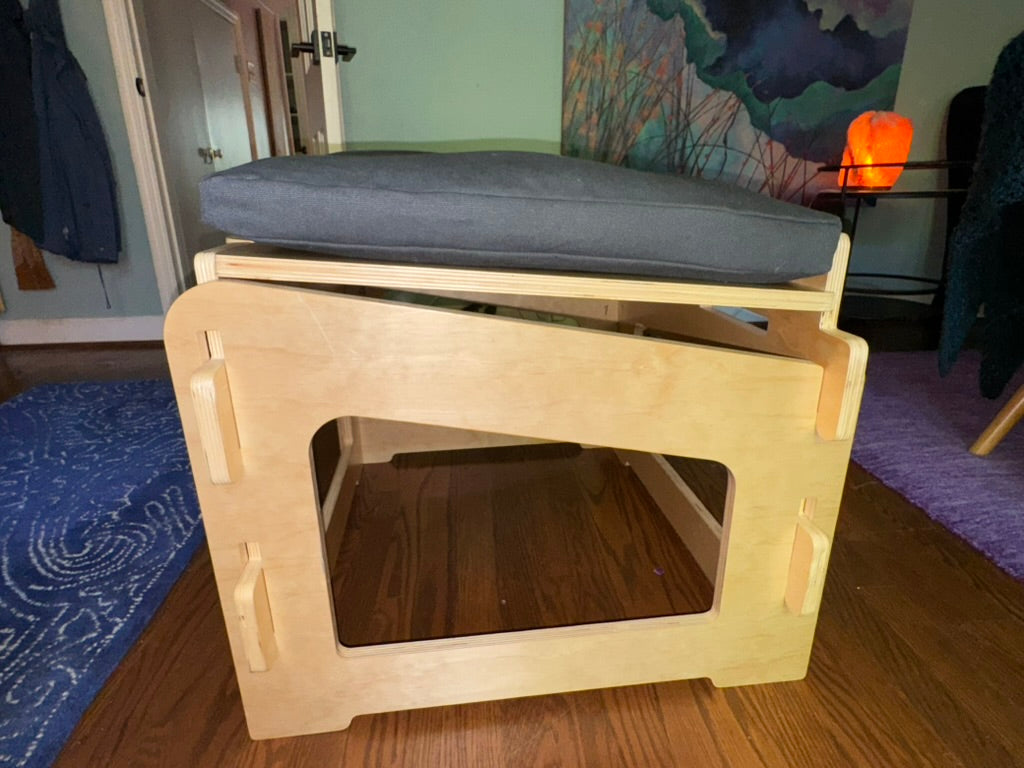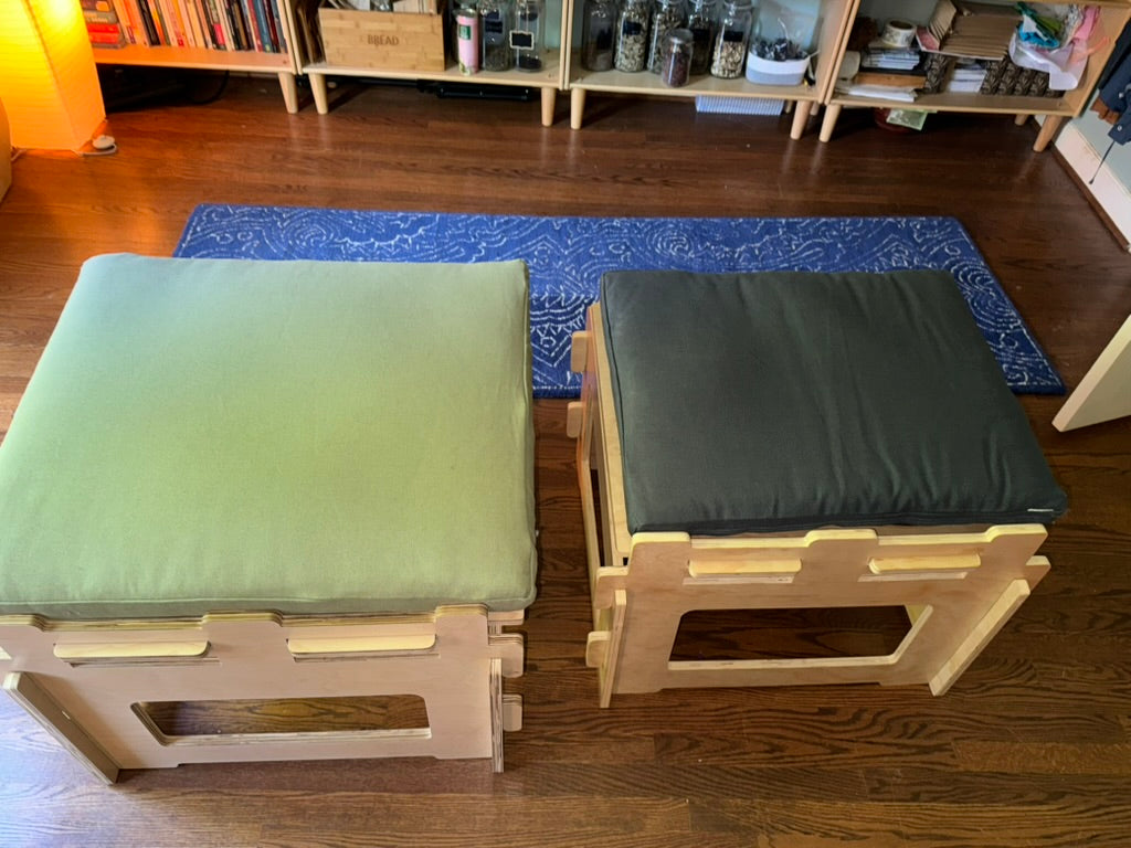 The forward tilt naturally encourages an upright spine and open hips, making it ideal for seated meditation or breathwork. The grounded, floor-adjacent design fosters somatic awareness and a deeper mind-body connection.